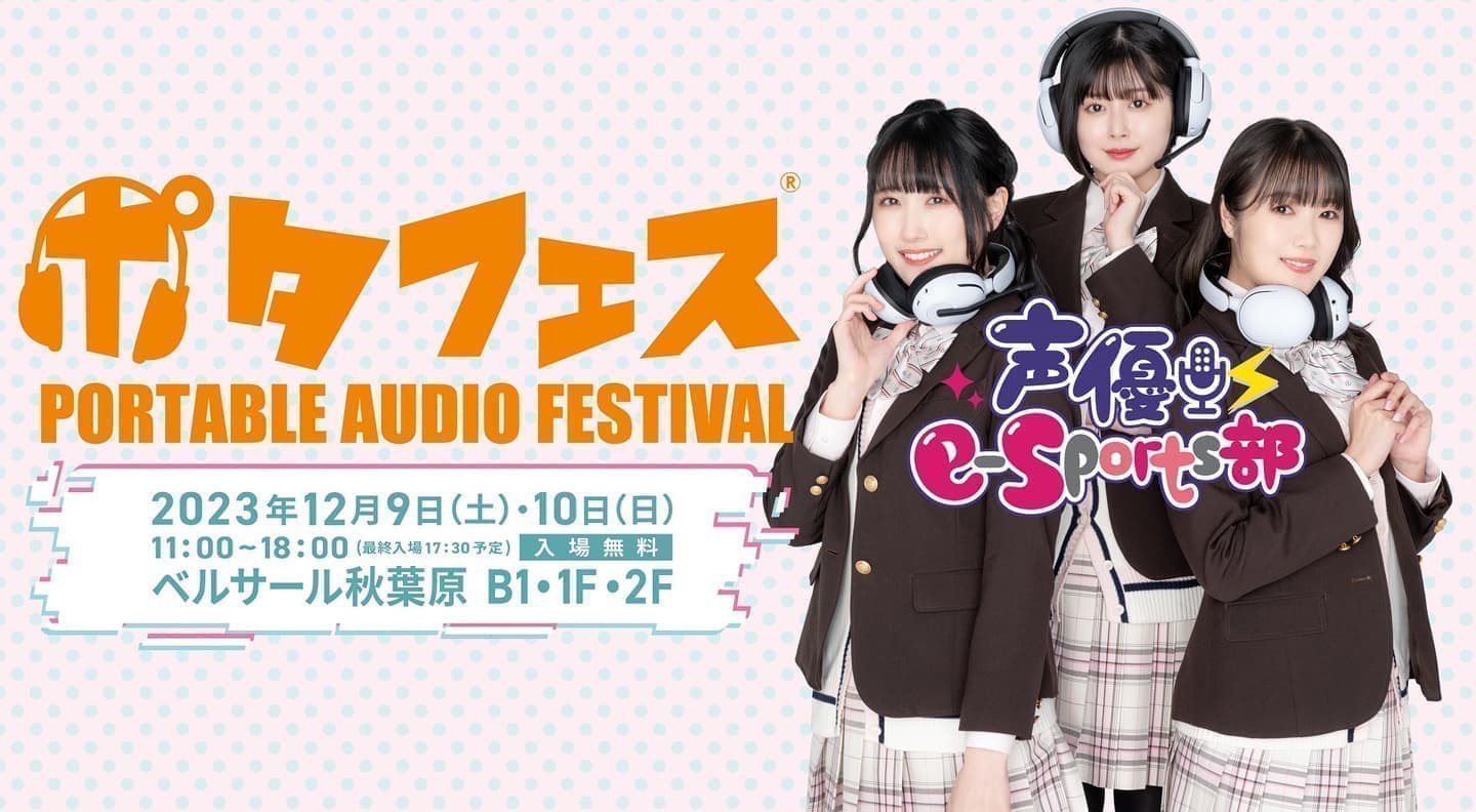 ポタフェス2023冬 秋葉原はe☆イヤホンゲーミングイヤーに相応しくメインビジュアルには声優e-Sports部の3名を起用。水野朔さん、ピエール中野さんをゲストにお招きし「e☆イヤホンTV 特別編」を実施いたしました。