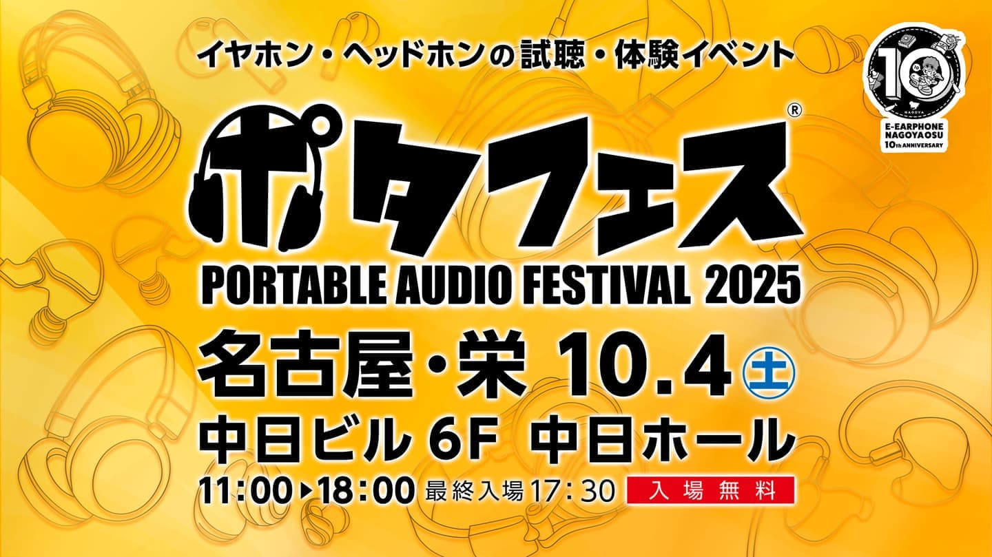 e☆イヤホン名古屋大須店10周年を記念した「ポタフェス 2025 名古屋」は、会場を新たに中日ホールに移し、ポタフェス名古屋史上最大級の規模での開催となりました。前回(2023年4月)を大きく上回る来場者数を記録しました。
